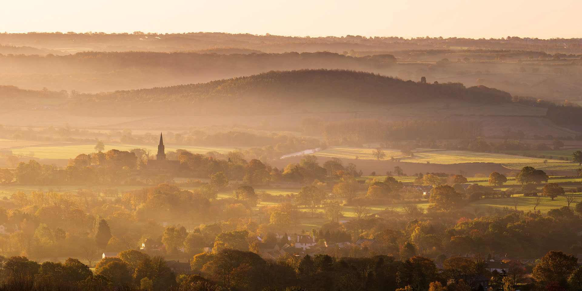 Golden light streaks across Weeton on a crisp autumn morning.
