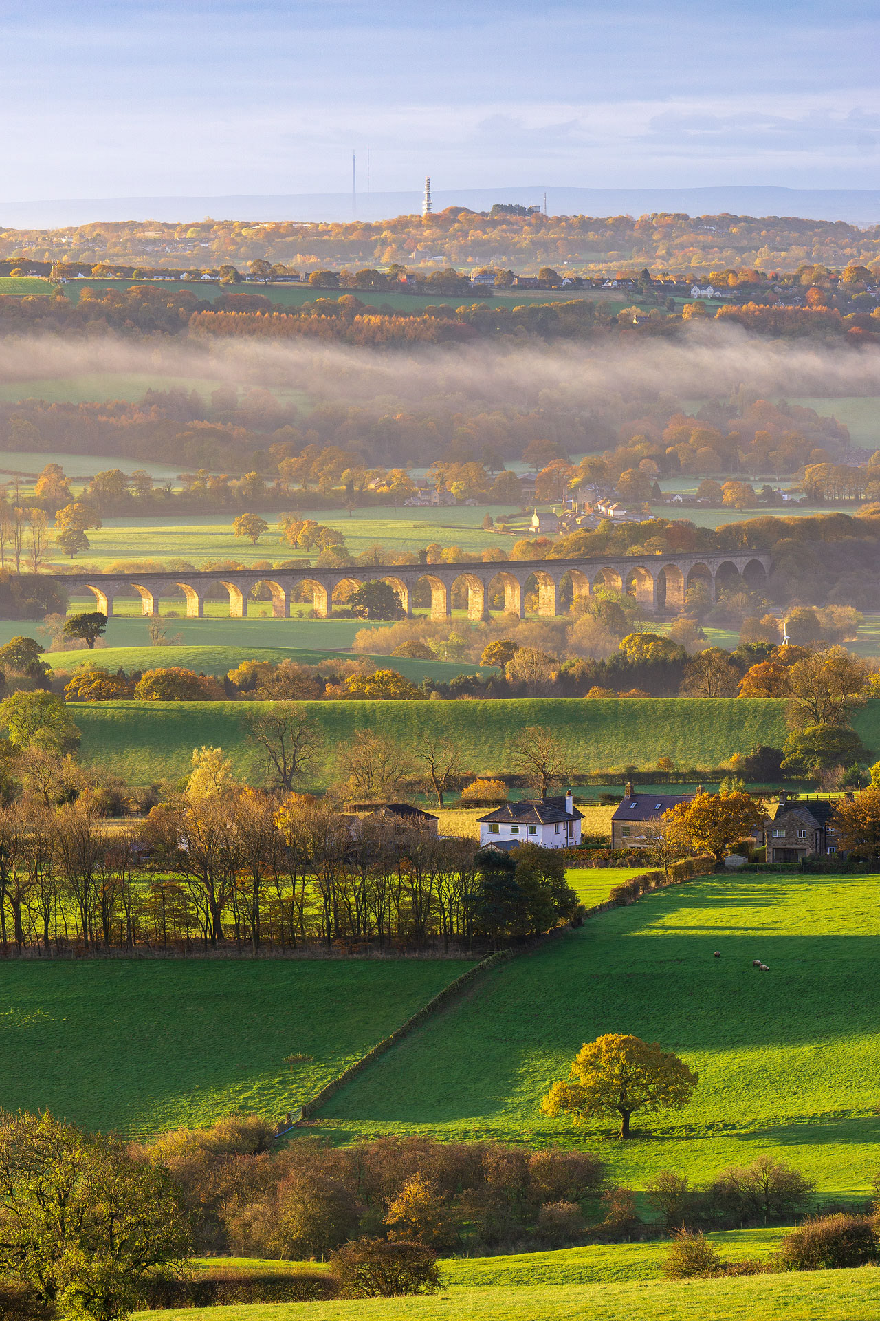 The view across Huby and Arthington Viaduct towards the Leeds conurbation. The first captured in late summer, the second in autumn.