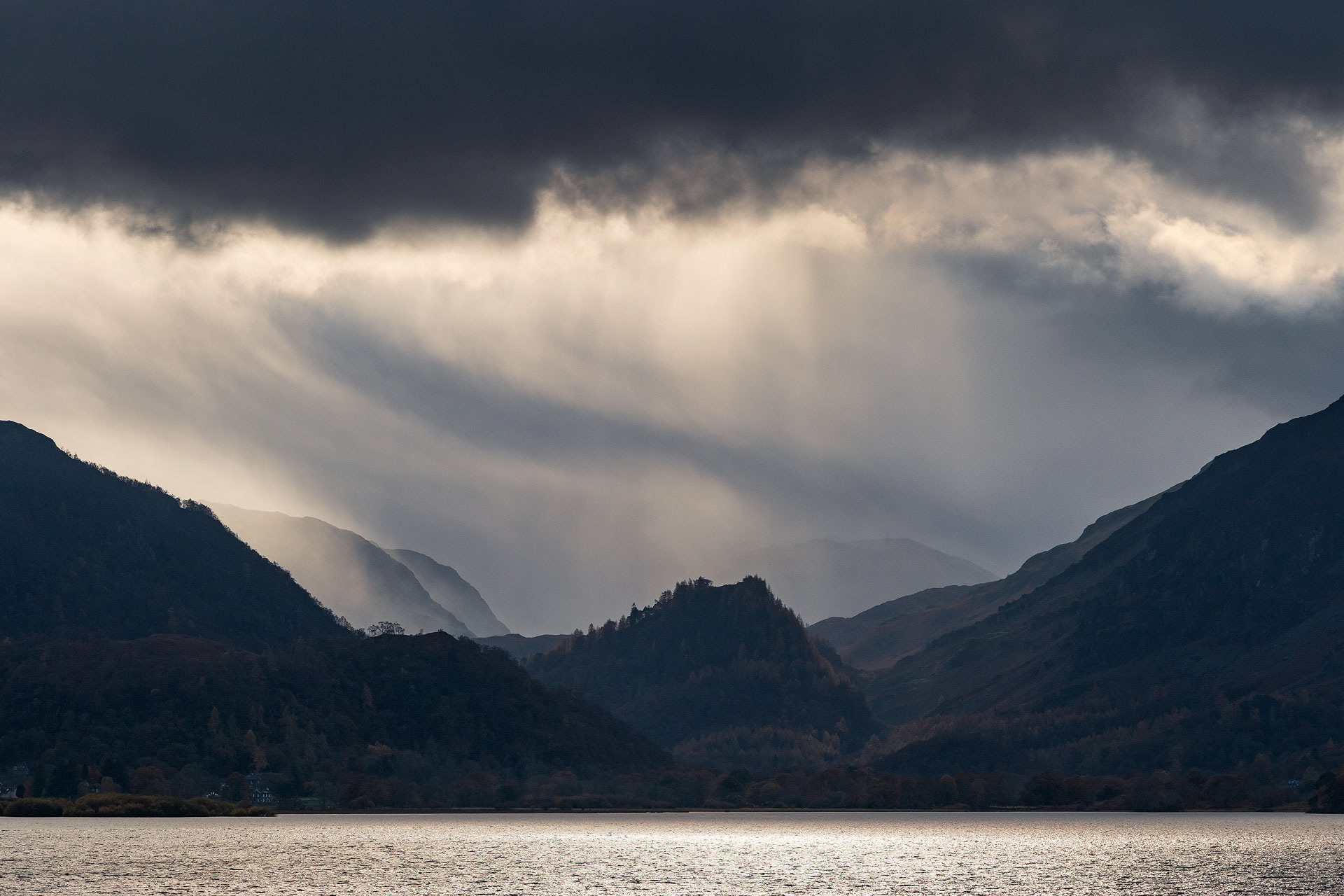 Transient conditions in the Northern Lakes. A passing squall viewed from the summit of Latrigg and brooding clouds over the Jaws of Borrowdale.