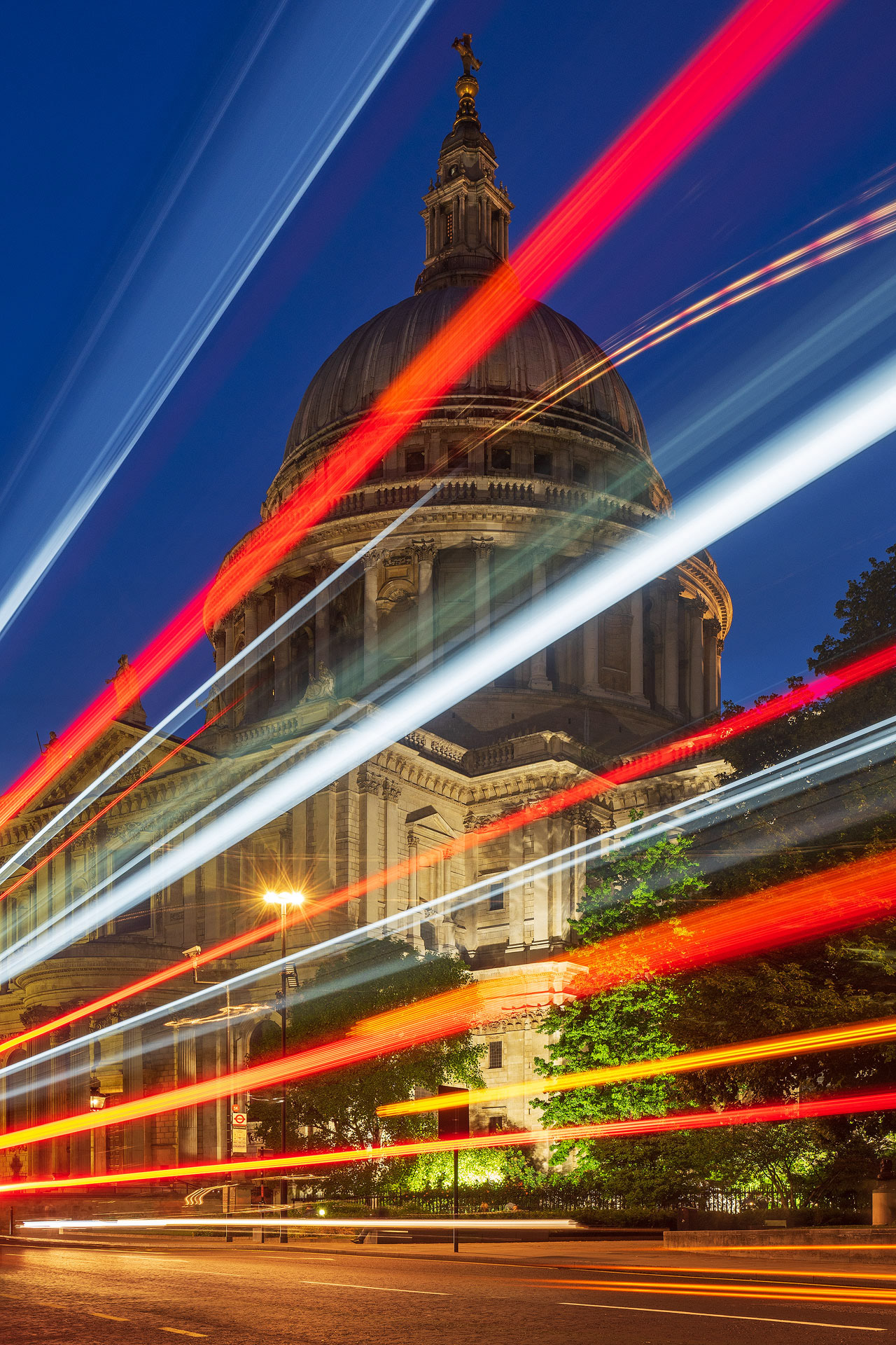Classic London landmarks during the blue hour; St Paul's Cathedral and Tower Bridge.