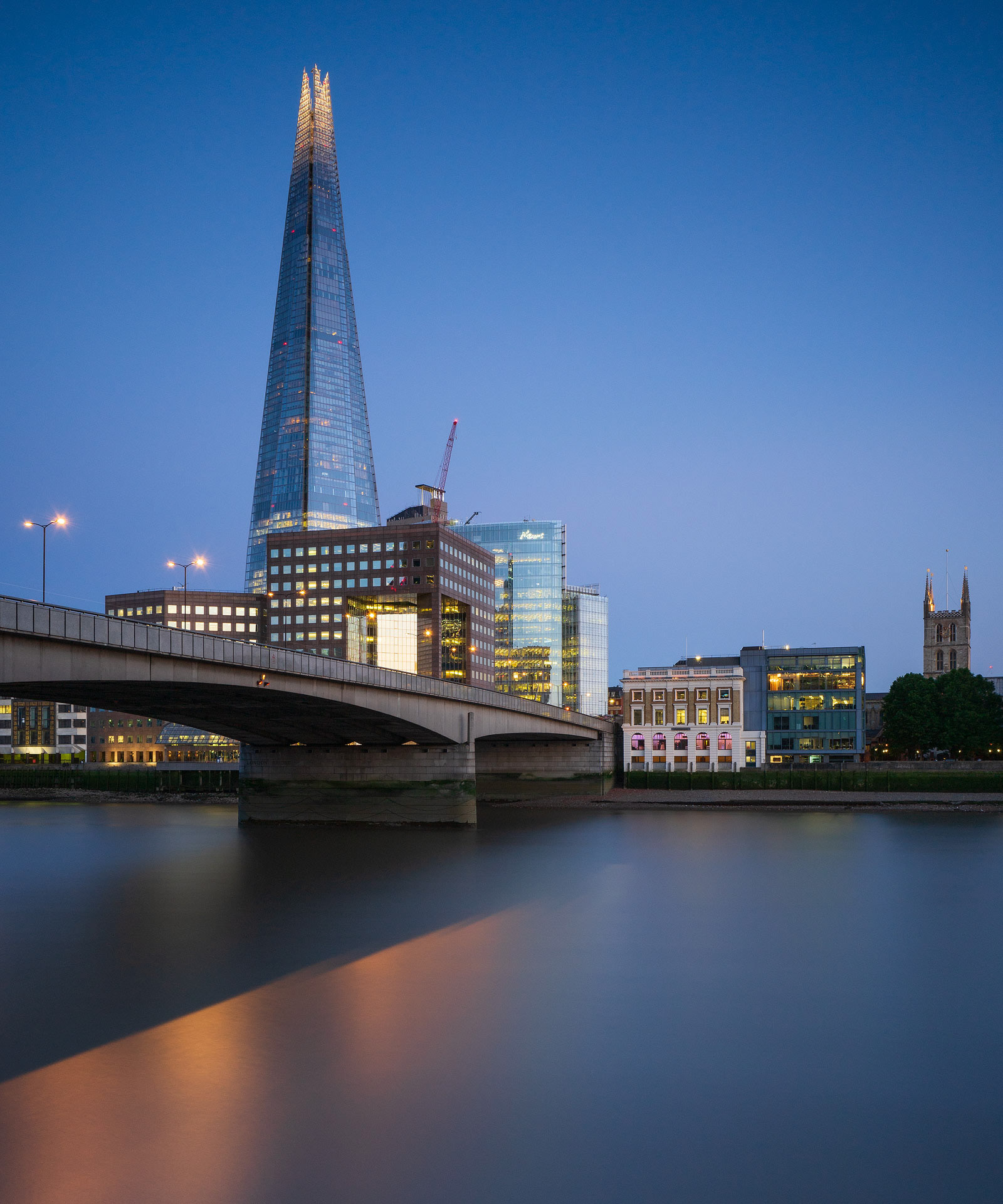 The Shard captured under the purple hues of the Belt of Venus and a little later during the blue hour.