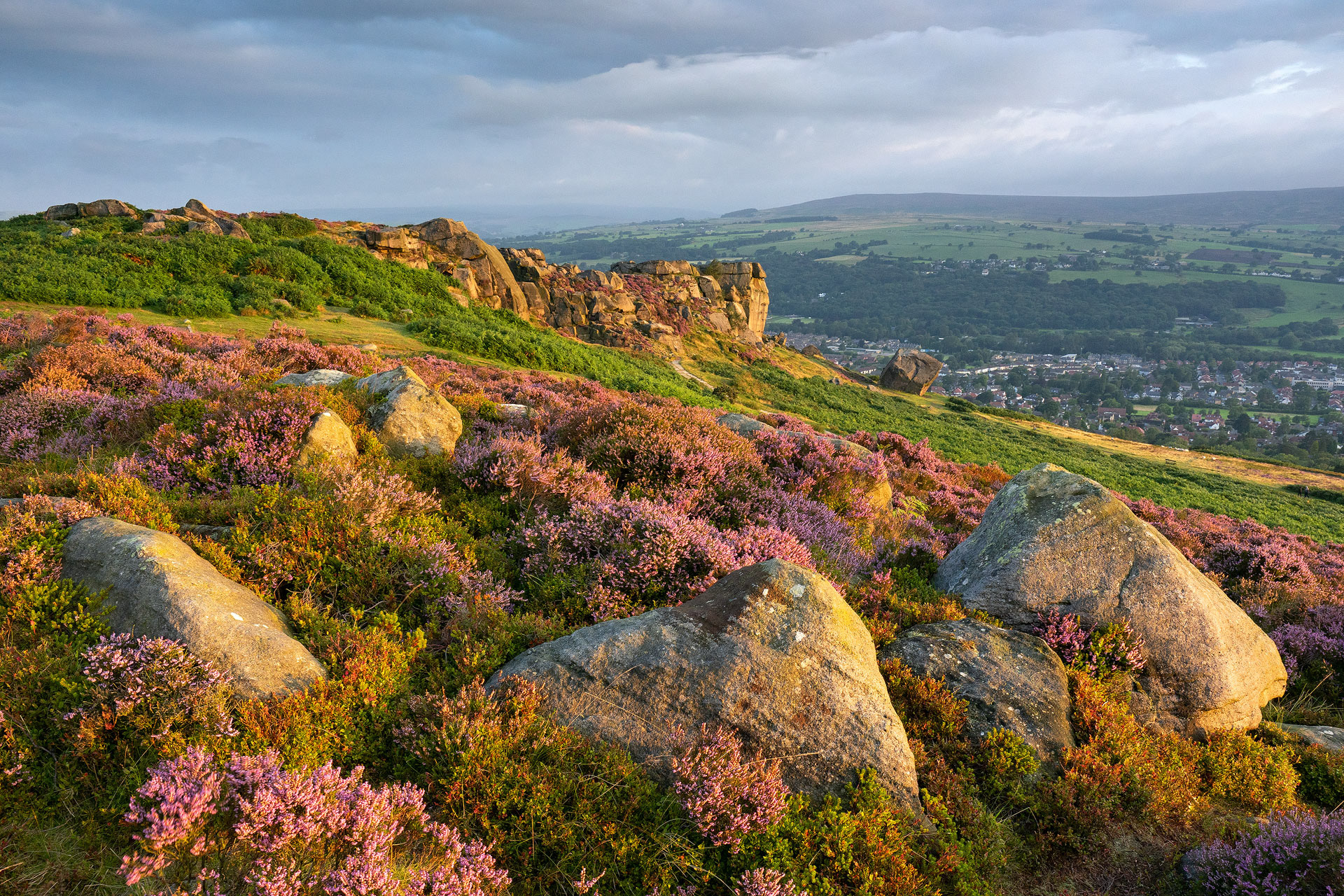 A pair of images captured in 2014 with my trusty old Pentax K-5 DSLR. Rich golden light and vibrant sunset colour over the Pancake Stone above Ilkley.