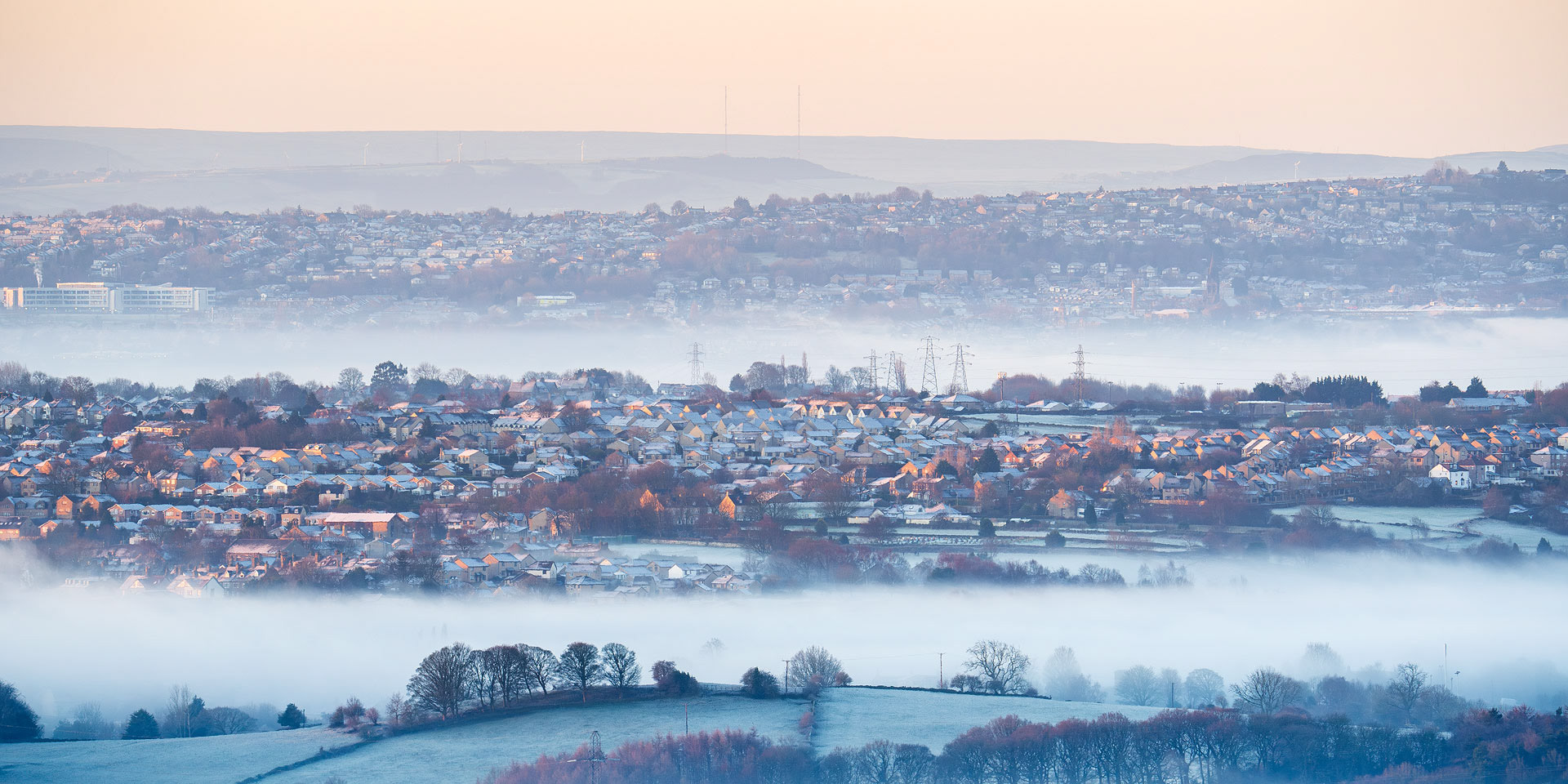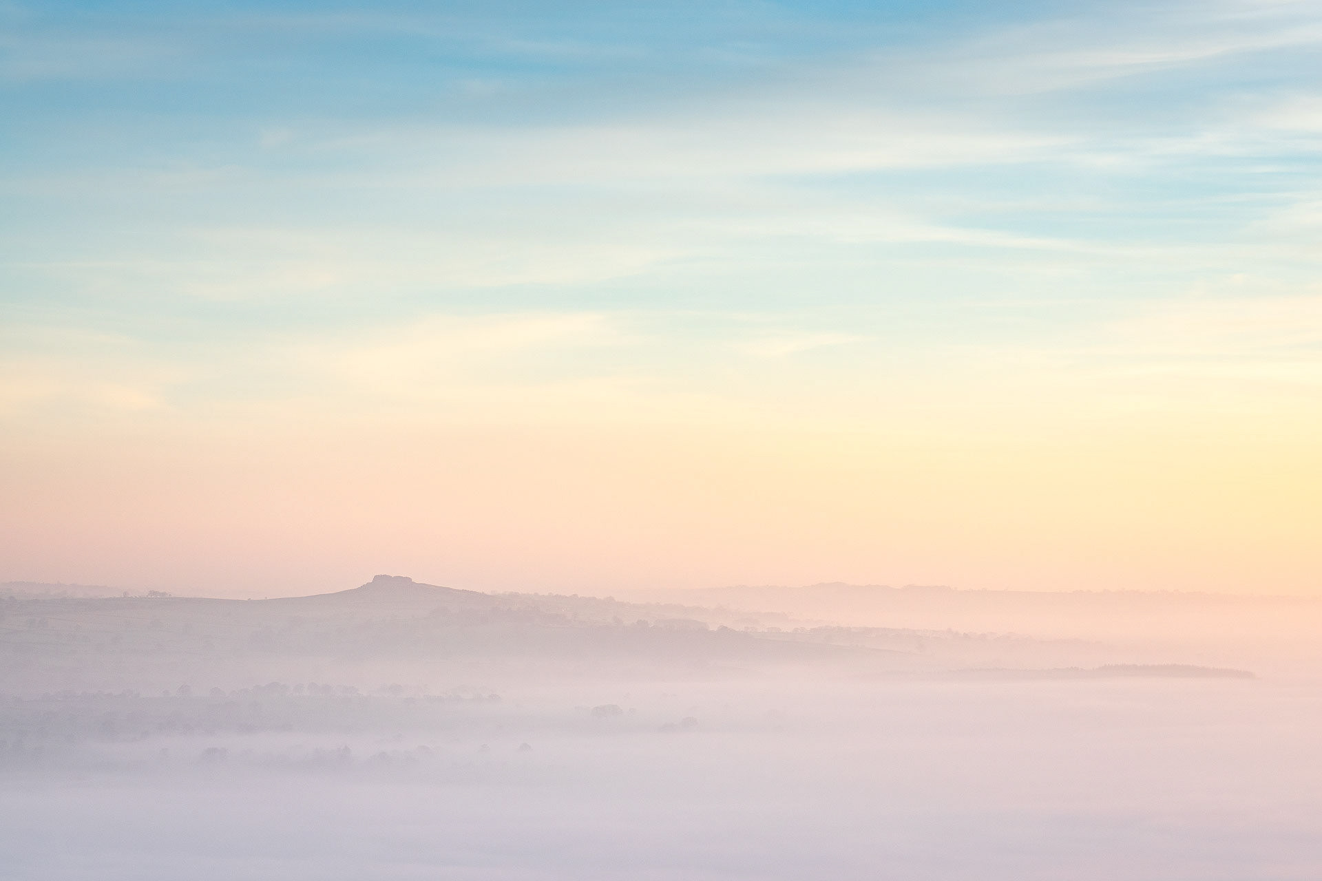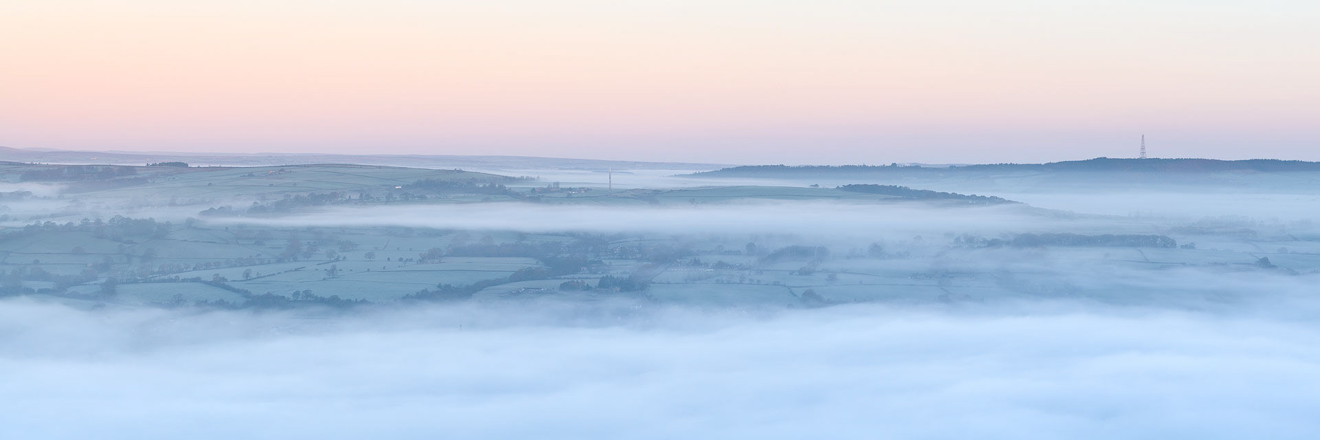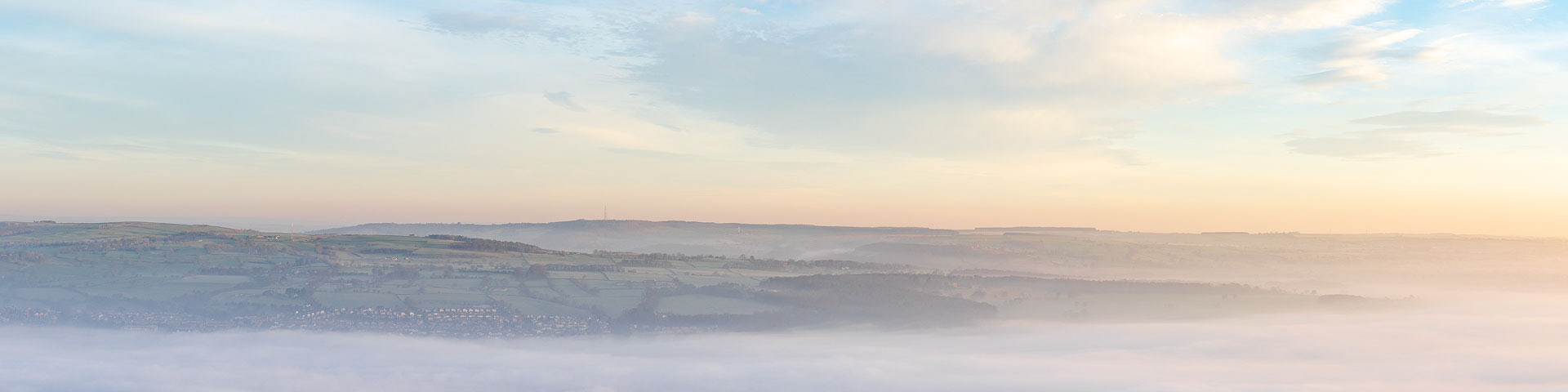 A panoramic image capturing Norwood Edge and Askwith Moor. Otley is underneath the blanket of fog...